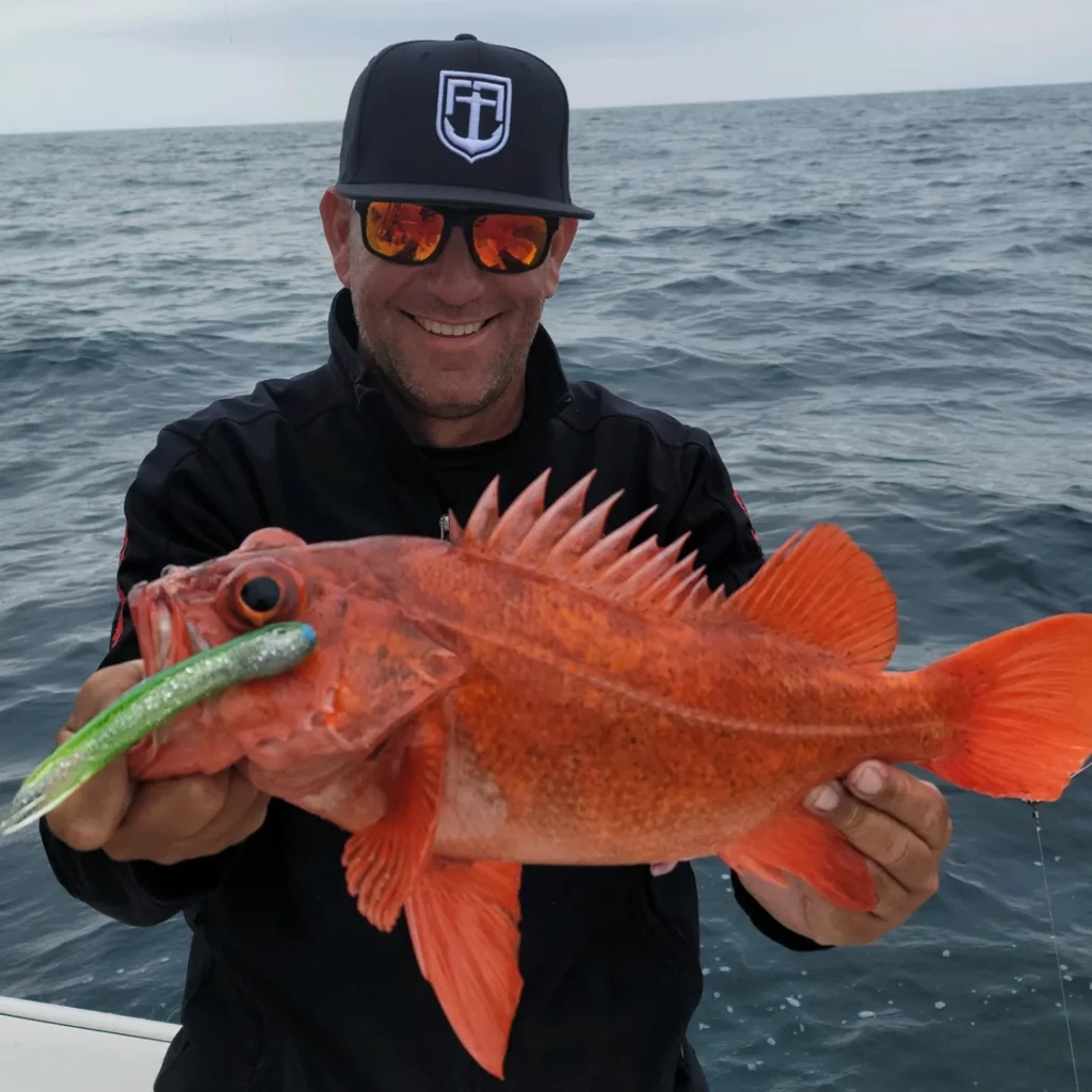 So we did—Cash and Jared cruising right next to us the whole way. Tom was stoked to see that. At the pipe, we picked away at bass and rockfish. The bite was slow, but none of that mattered. Tom kept smiling and saying, “This is good.”