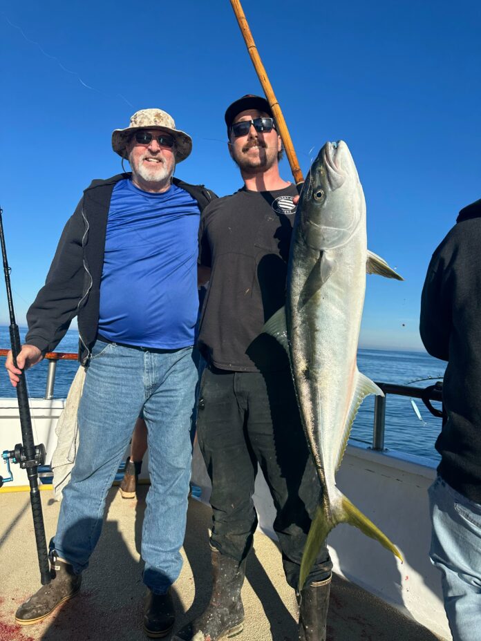 “Hey Merit, we had excellent yellowtail fishing this weekend on our 2.5 day. 2 day limits (120) for our 12 angler from 15 to 25 pounds. Great yo-yo fishing along with a couple surface iron fish. We also caught the first bluefin of the season which was about 60 pounds. Plenty of lingcod, reds and big bonito in the mix too.”