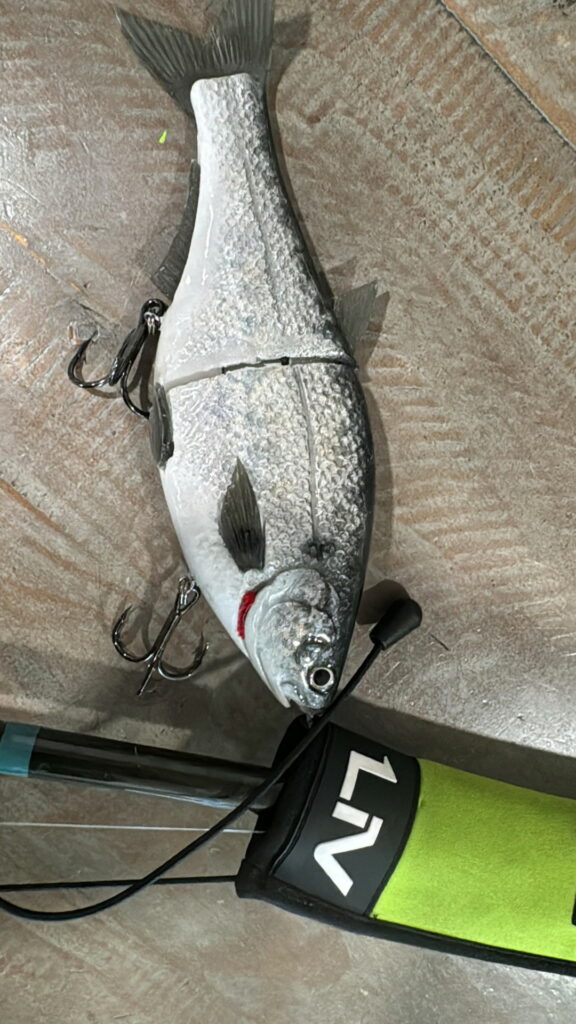 The bait sat for a while before Guzman decided to get it painted in a shad pattern, and he sent it back east to “Little River Lure Lady” (instagram.com/littleriverlurelady). She gave it an incredibly lifelike look based on a shad photo Guzman provided, and she included a “thank you” note that said, “I hope you catch the world record!”