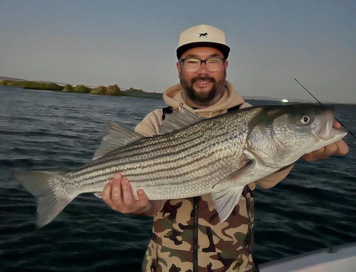The schools are moving into the Sacramento system as Omega Nguyen of Mega Bait and Tackle in Lathrop caught and released 27 striped bass to 23 pounds drifting minnows near the Rio Vista Bridge. Alan Fong of Alan Fong Outdoors added, “There aren’t many large schools of striped bass, but they will start moving in soon. One day soon, they will just pop up.”