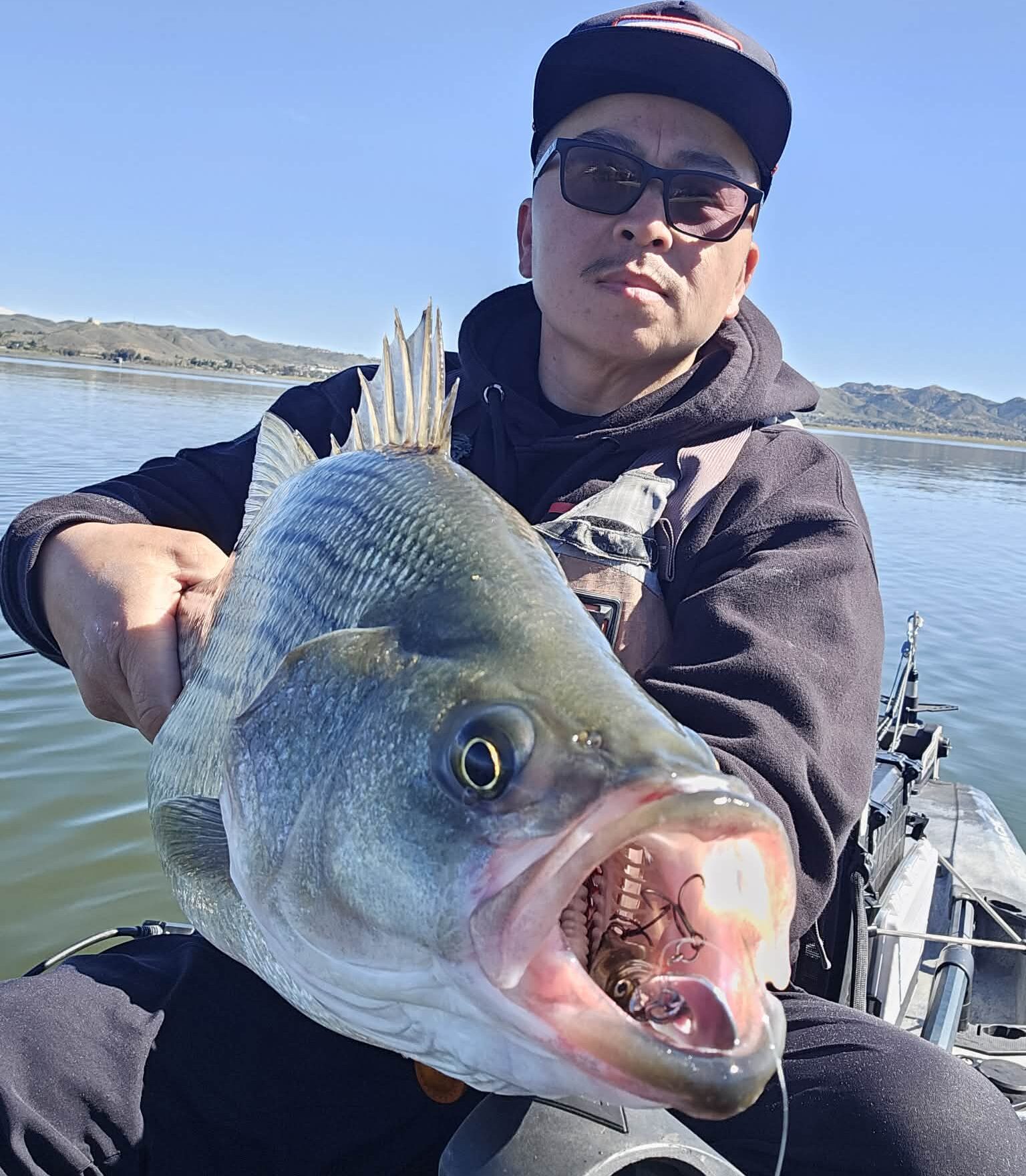 That lasted a couple weeks before tapering off (but not completely shutting down), and the recent storms that moved through got Elsinore wipers popping off again, and kayak fishing specialist Kei Vang has been taking full advantage.