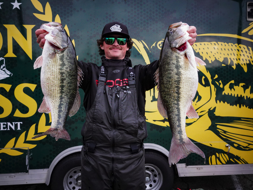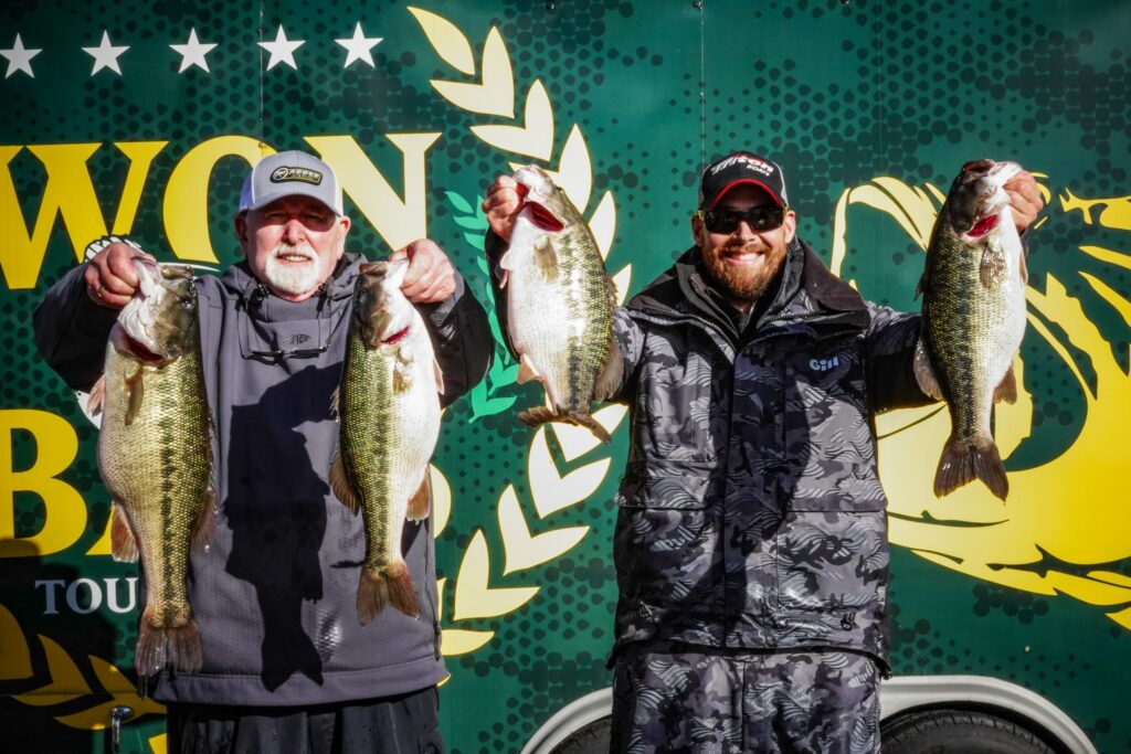 Reigning WON Bass Angler of the Year Kyle Grover of Rancho Santa Margarita, Calif. and his AAA partner Eli Guryanov of West Sacramento, Calif. landed in second place after day one with a 25.25-pound limit of spotted bass.